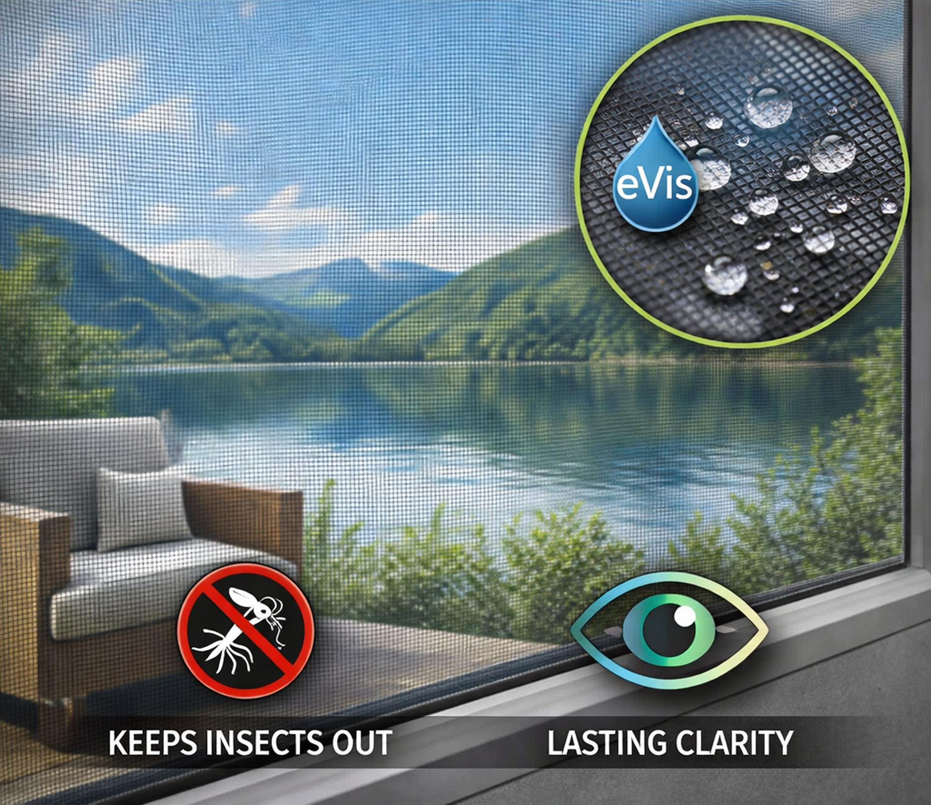 Eco Hygenix BetterVue® insect screening with Water Shed Technology™ maintains clear optical clarity by