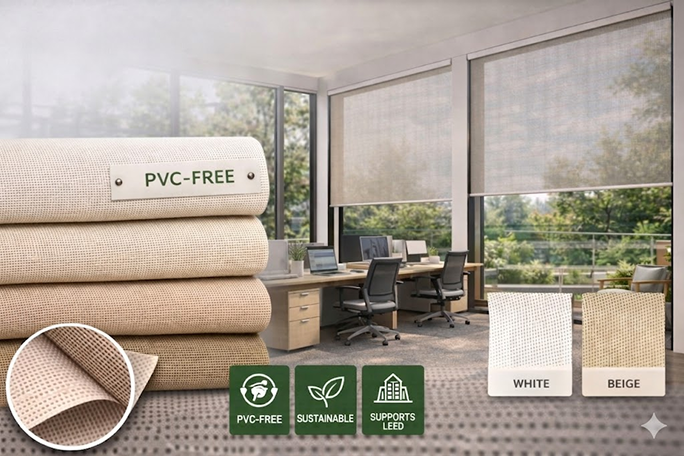A PVC-free sun control fabric designed to support sustainable building practices.