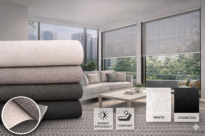 Advanced solar control fabric designed to support energy-efficient solutions.