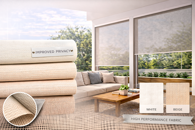 A high-performance fabric that offers improved privacy while regulating light transmission.